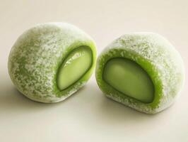 1 pièce 60g. Le Daifuku mochi (pâte faite à base de riz gluant ) fourré à la crème de soja et du thé vertBOISSONS